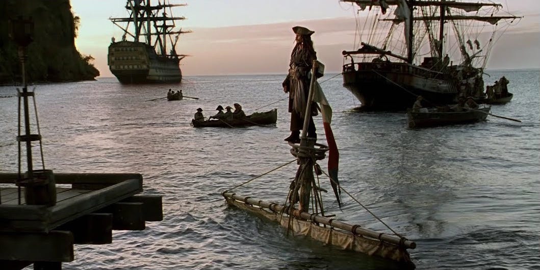 The film Pirates of the Caribbean opens with a battered ship limping into port, taking on water at alarming speed. Standing atop the prow, looking remarkably unbothered, is Captain Jack Sparrow. He waits until the very last second — just before his vessel sinks beneath the waves — to hop onto the dock.