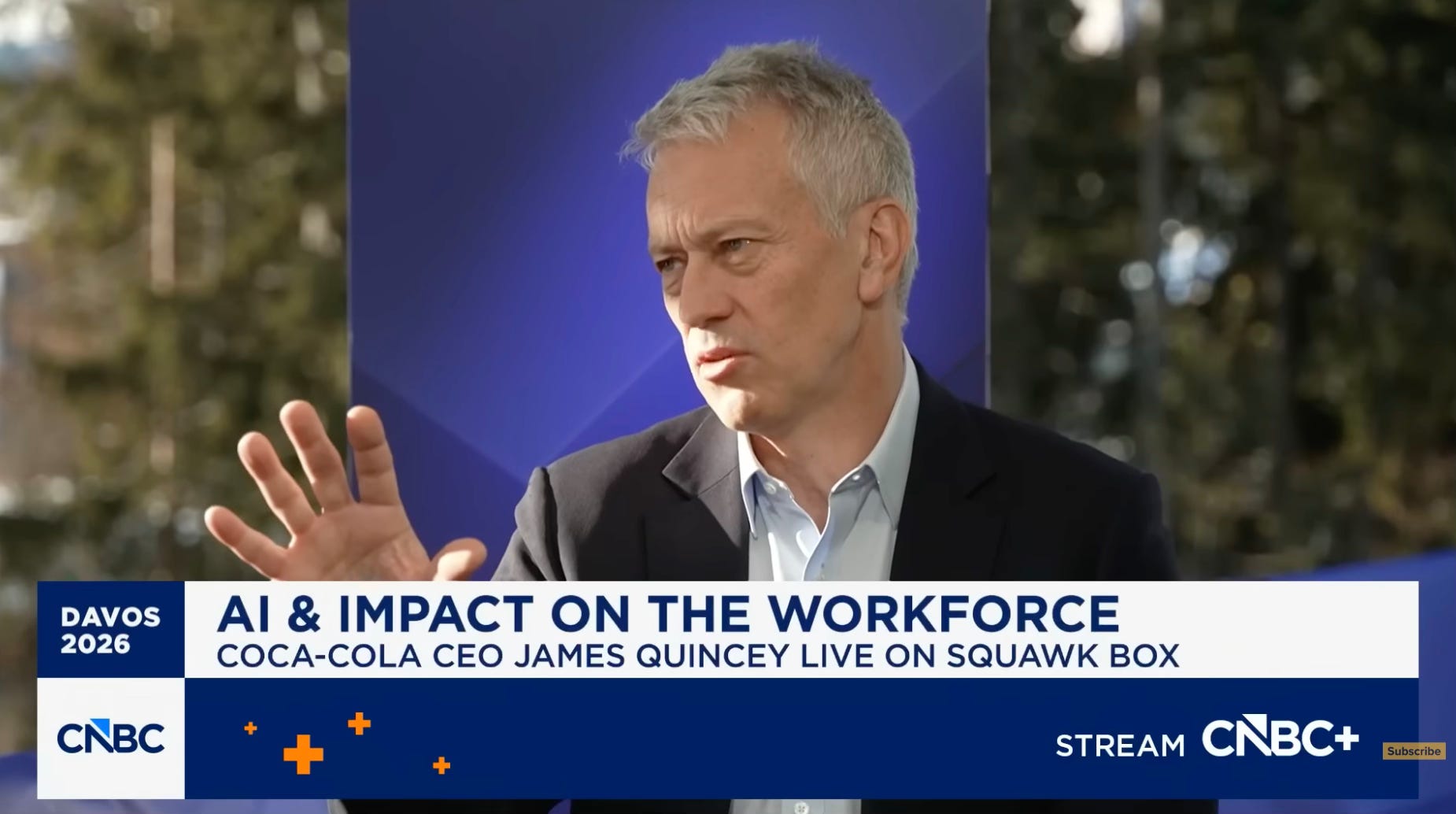 Quincey guessed that fiber might be the next frontier for health-conscious customers. He mentioned, much to the CNBC panel’s amazement, that they already sell Diet Coke with added fiber in Japan, though it’s not a big mover.