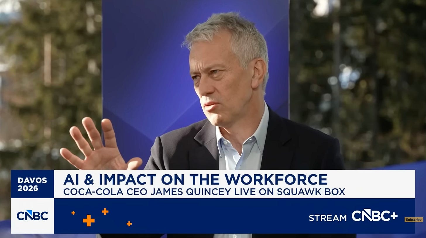 Coca-Cola CEO James Quincey — who will retire in March — told CNBC that “it’s better to go slightly early” and that he’s leaving the soft drink maker in fine fettle. “We’ve brought momentum back to the business over the last ten years,” he said, and can only see that continuing under his successor Henrique Braun. “He’s been around the system,” continued Quincey. “[He’s] someone with the energy to take us to the next stage. He’s very keen on the digital stuff and how to remain human-centric as we go forward with that. I just felt that it was the right time to pass the baton on while we are in great shape. [Basically], don’t overstay your welcome.”
